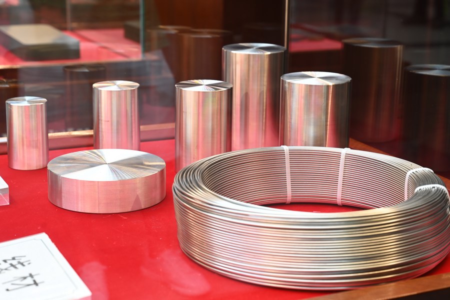 Stainless steel wires and bars are displayed in an exhibition area of Tsingtuo Group in Ningde, east China's Fujian Province, June 24, 2022. (Xinhua/Lin Shanchuan)