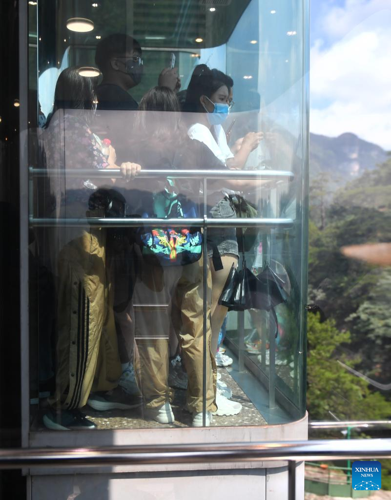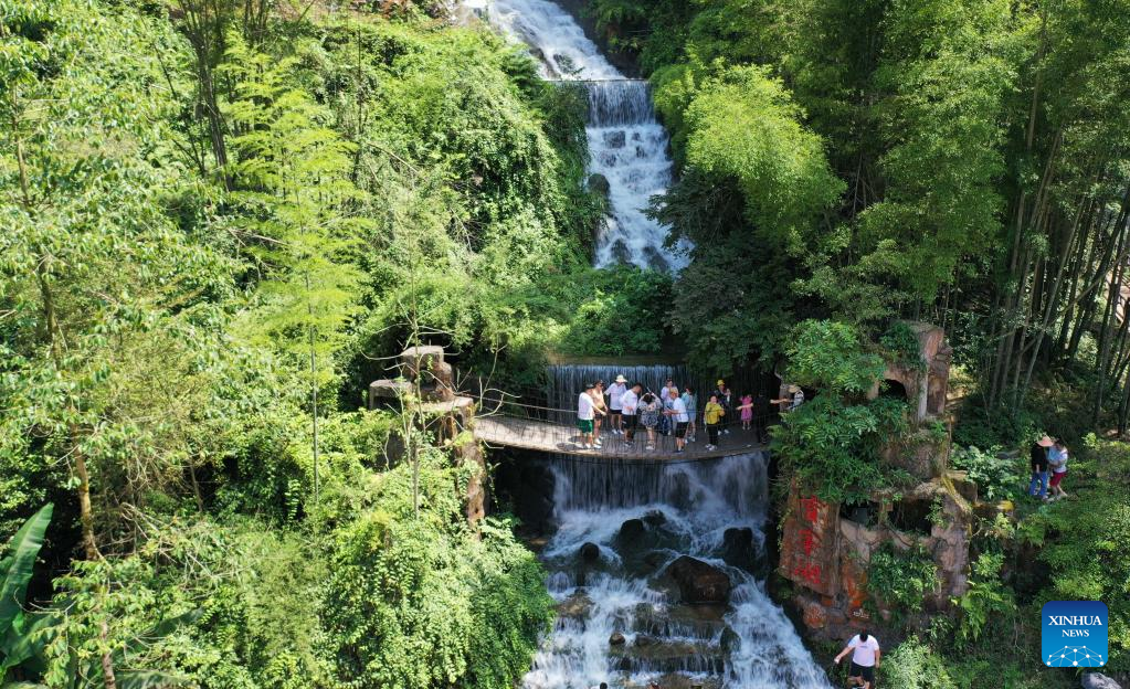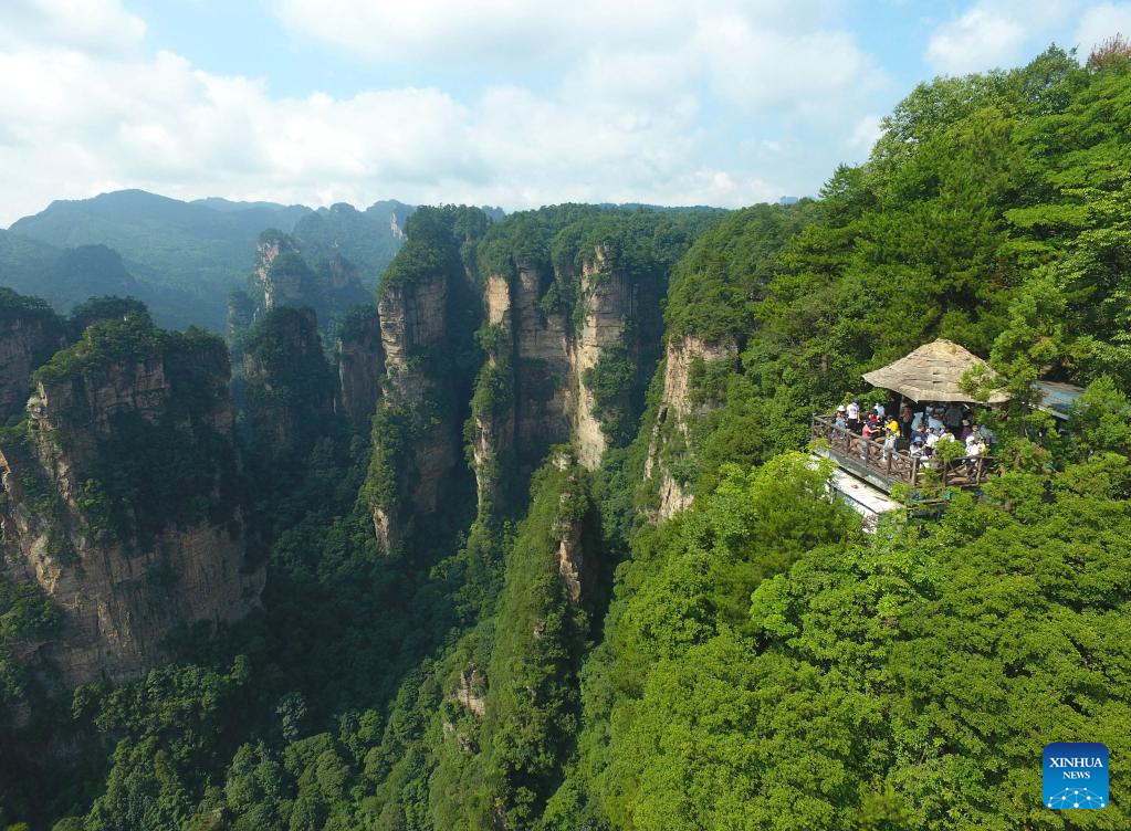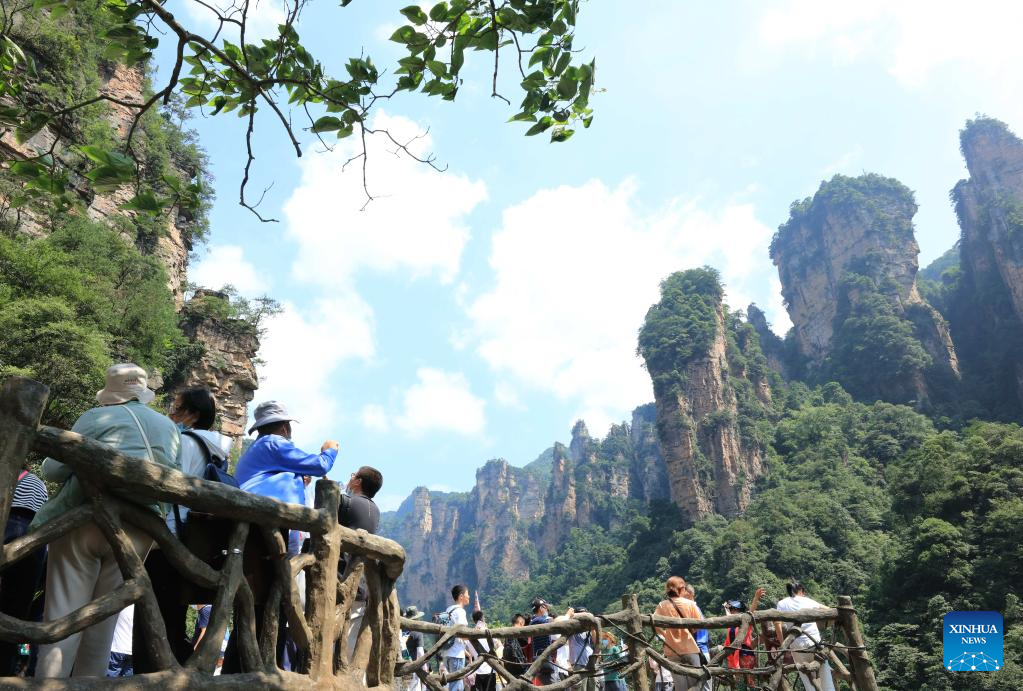 Tourists visit the Wulingyuan scenic area in Zhangjiajie, central China's Hunan Province, July 8, 2022. As the summer vacation approaches, Zhangjiajie, a popular tourist destination in Hunan Province, has taken a series of measures to boost the recovery of tourism. (Xinhua/Zhao Zhongzhi)