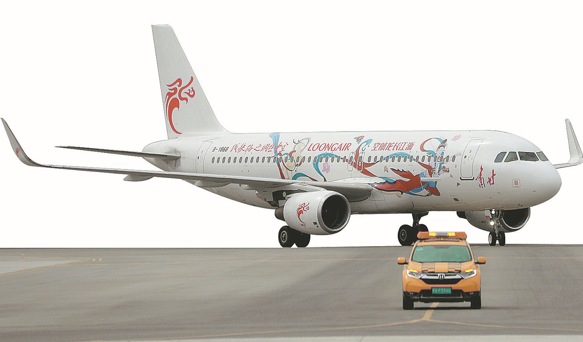 A plane carrying tourists arrives in Dunhuang, Gansu, on April 28. ZHANG XIAOLIANG/XINHUA