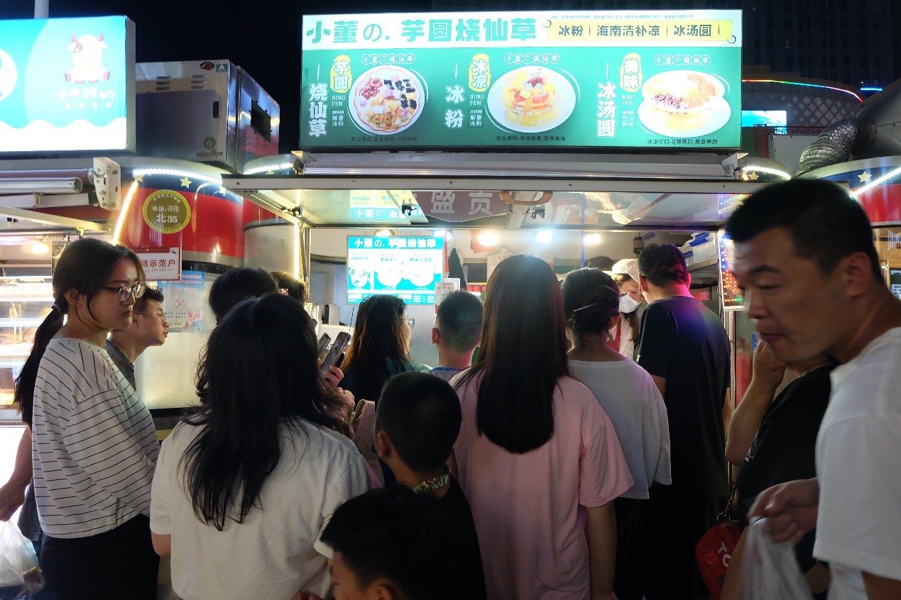 People line up to buy snacks at a night market in Yinchuan, northwest China's Ningxia Hui Autonomous Region on July 8, 2022. (People's Daily Online/Zhong Wenxing)