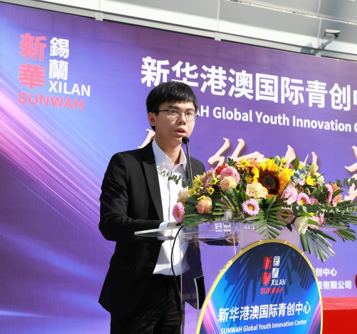 Jason Choi, President of the Sunwah Global Youth Innovation Center speaks at the inauguration ceremony of the Sunwah Global Youth Innovation Center held in Nansha district, Guangzhou, capital of south China’s Guangdong province, Dec. 10, 2021. (Photo from the official website of Sunwah Group)