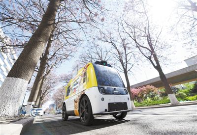 Photo shows a self-driving vehicle hitting the pavement in one neighborhood located inside the Beijing Economic-Technological Development Area, a demonstration zone for autonomous driving in Beijing, capital of China. (Photo/Xinhua)