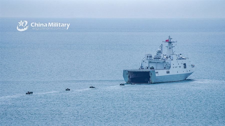 Amphibious infantry fighting vehicles enter the well deck of a Type 071 amphibious landing ship in formation during a collaboration exercise jointly conducted by an army brigade and a navy unit under the PLA Eastern Theater Command on June 16, 2022. (eng.chinamil.com.cn/Photo by Lin Jiayu)
