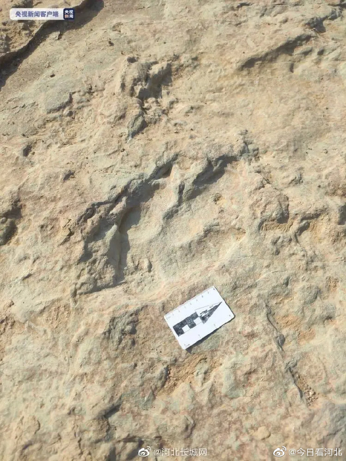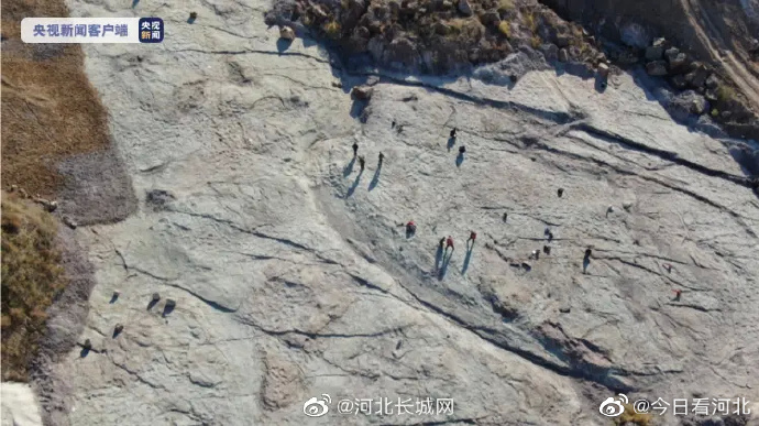 The fossil group was spotted in April 2020 on a local hillside, where hard rocks were seen covered with dense dinosaur tracks, some in a circular shape and some in the shape of animal claws, said Sun Xiao, chief engineer with the Hebei provincial regional geographical survey institute.