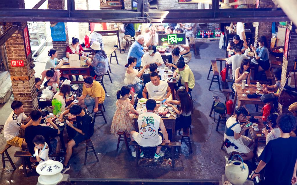 People rest in a teahouse in Jiulongpo District of southwest China's Chongqing, July 11, 2022. As Chongqing is sweltering in a heatwave, locals turn to different places to escape the scorching heat. (Xinhua/Liu Chan)