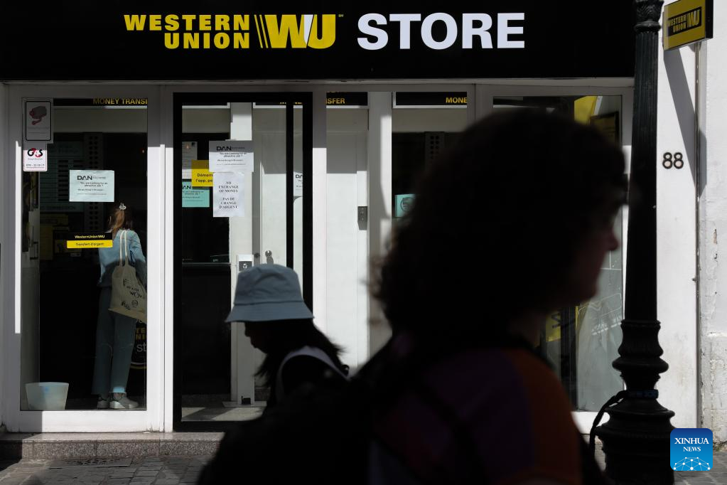 People walk past a store of Western Union in Brussels, Belgium, July 12, 2022.
