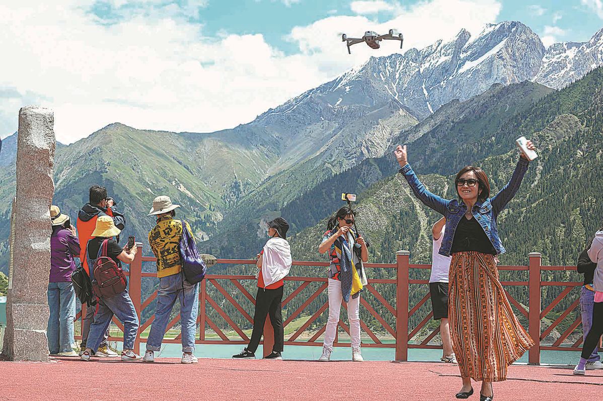 Visitors stop at a scenic spot along the highway. GAO HAN/XINHUA