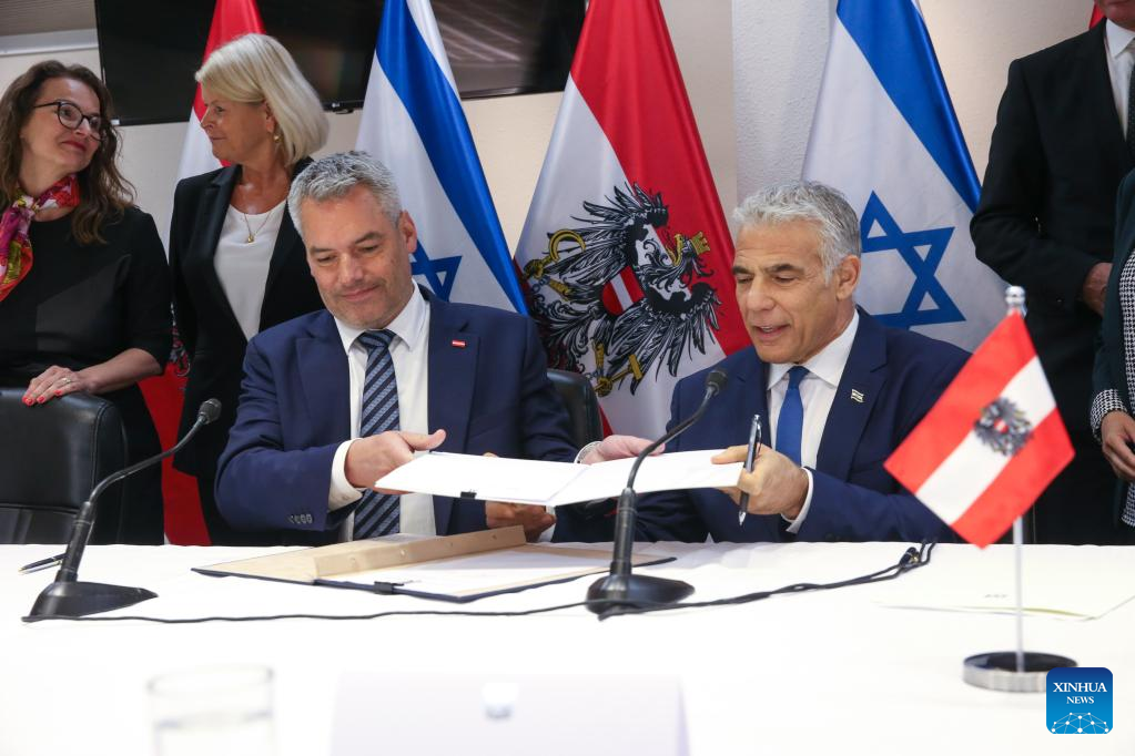 JERUSALEM, July 12 (Xinhua) -- Israel and Austria signed on Tuesday an agreement on establishing "a comprehensive strategic partnership" to expand security cooperation.