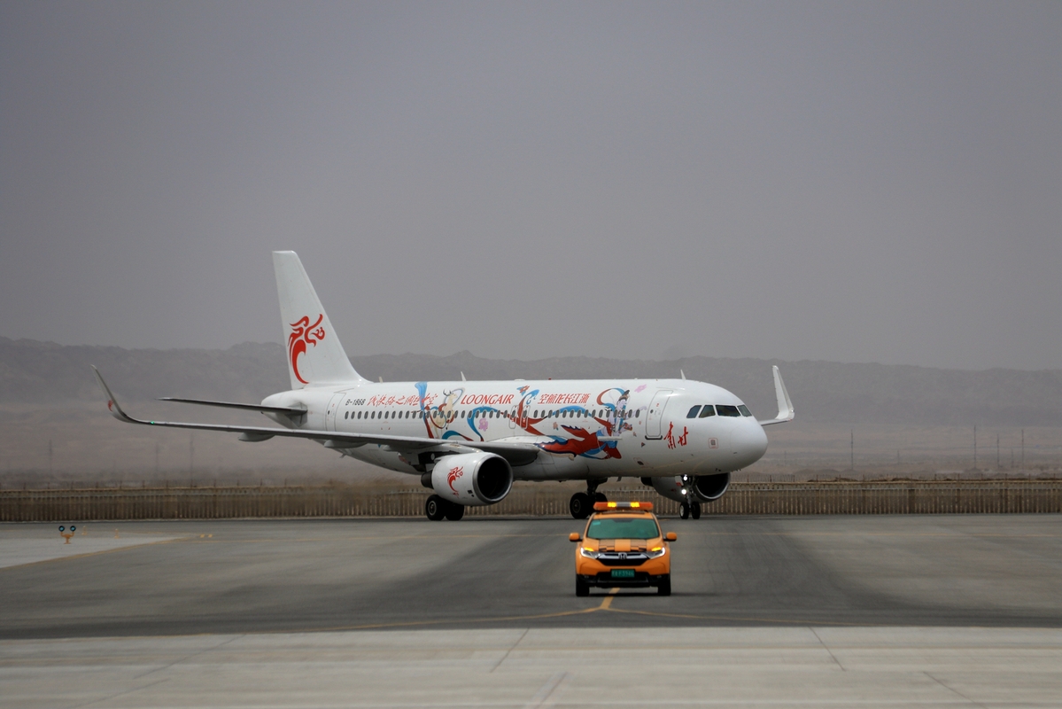 A plane carrying tourists arrives in Dunhuang, Gansu, on April 28. ZHANG XIAOLIANG/XINHUA