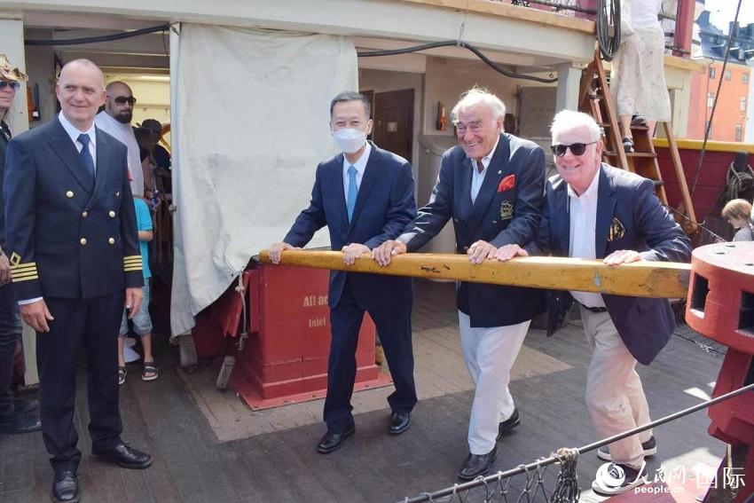 Chinese Ambassador to Sweden Cui Aimin extended his best wishes to G?theborg of Sweden, which headed out once again on the Asia Expedition 2022/2023 to China, when he saw off the ship at the Ports of Stockholm in Sweden on July 12, 2022.