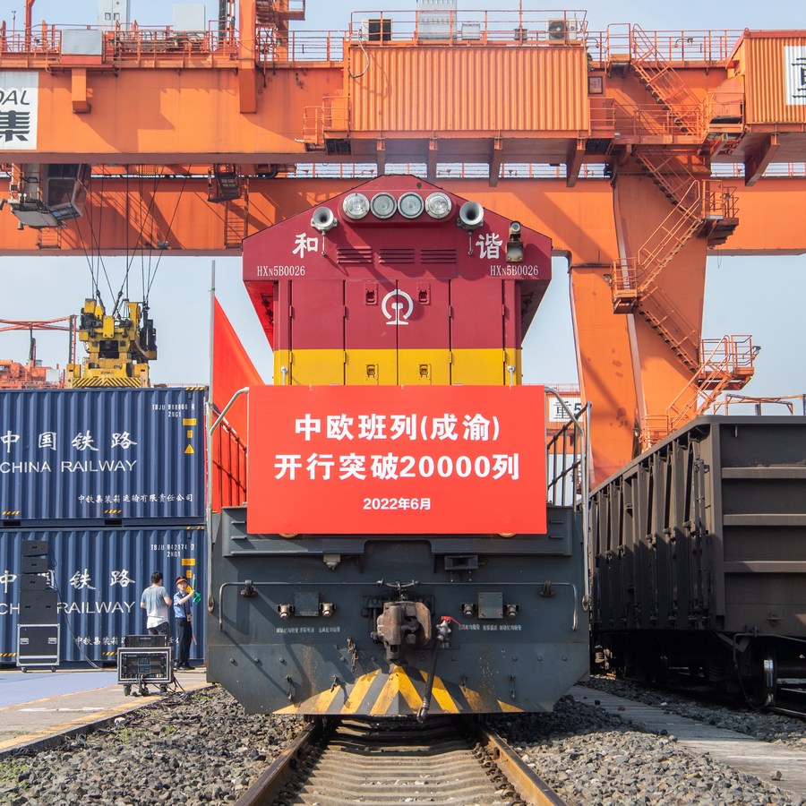 Photo taken on June 30, 2022 shows a China-Europe freight train ready for departure at the Tuanjiecun station in southwest China's Chongqing Municipality. (Xinhua/Tang Yi)