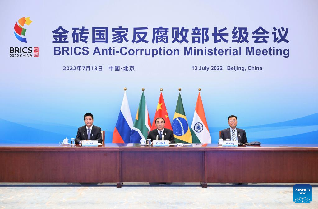 BEIJING, July 13 (Xinhua) -- A senior official of the Communist Party of China (CPC) on Wednesday called on the BRICS countries to jointly safeguard multilateralism and build a fair and reasonable international anti-corruption governance system.