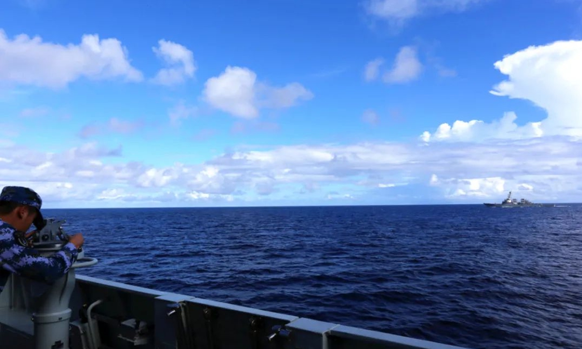 According to a photo and caption released with the statement, the Chinese forces featured in the operation included the Type 054A guided missile frigate Xianning. The photo shows that the Chinese and US vessels are in visual range, with a PLA sailor on board the Xianning gathering data on the US destroyer.