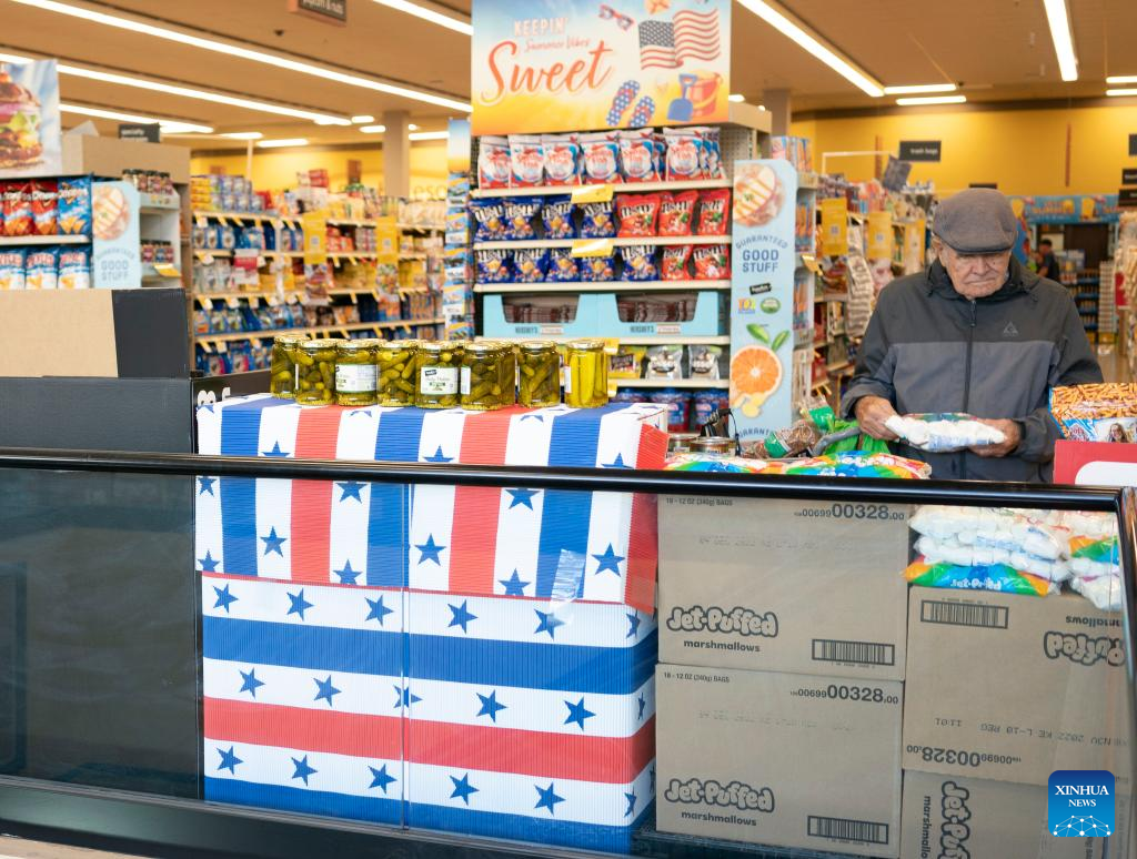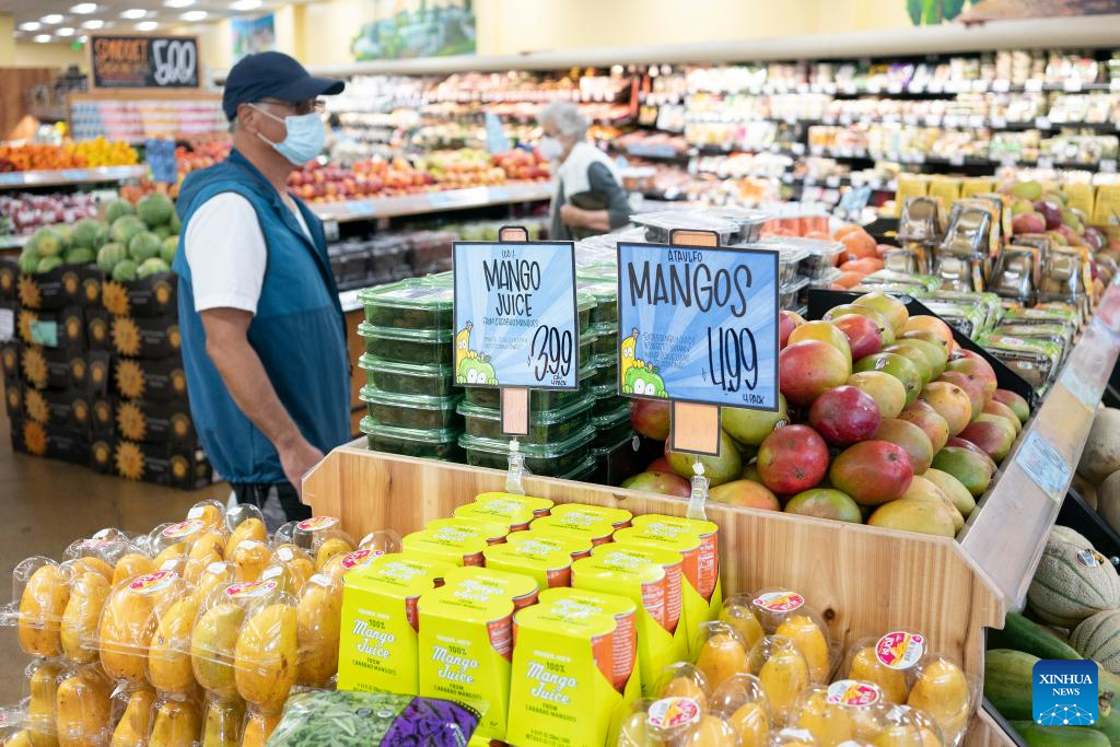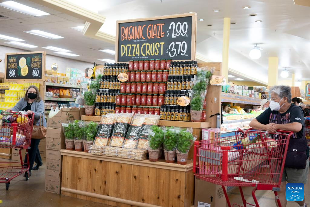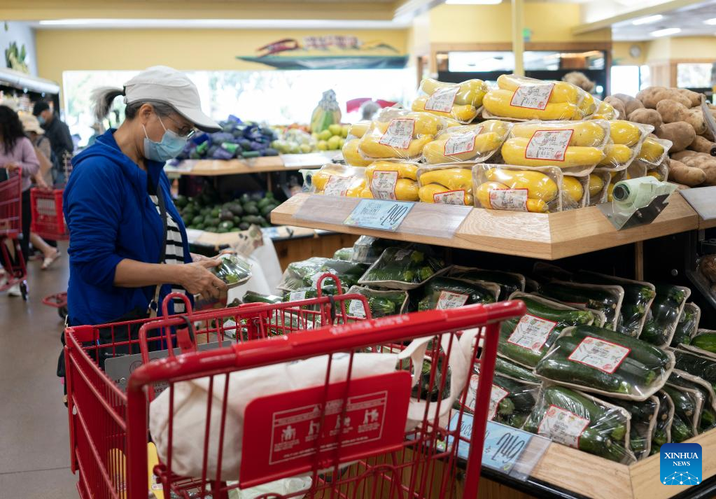 Customers select goods at a supermarket in Millbrae, California, the United States, July 13, 2022. U.S. consumer price index (CPI), a broad measure of everyday goods and services, soared 9.1 percent in June from a year ago, marking the largest 12-month increase since the period ending November 1981, the Labor Department reported Wednesday. (Photo by Li Jianguo/Xinhua)