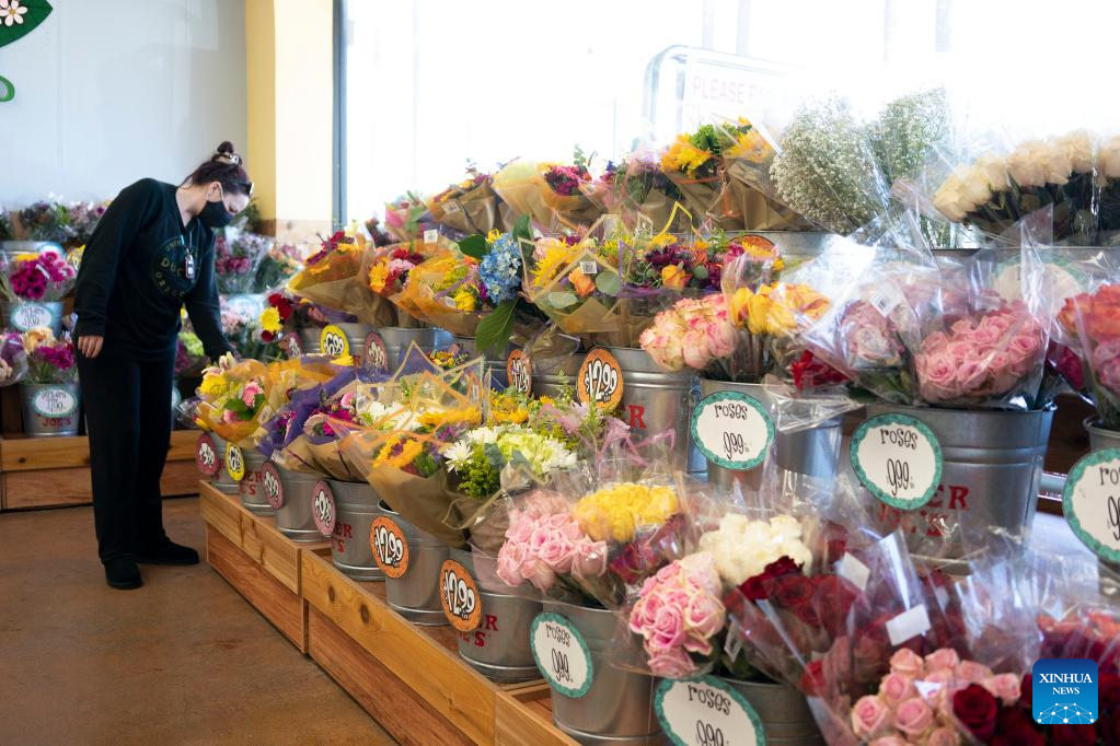A customer selects flowers at a supermarket in Millbrae, California, the United States, July 13, 2022. U.S. consumer price index (CPI), a broad measure of everyday goods and services, soared 9.1 percent in June from a year ago, marking the largest 12-month increase since the period ending November 1981, the Labor Department reported Wednesday. (Photo by Li Jianguo/Xinhua)