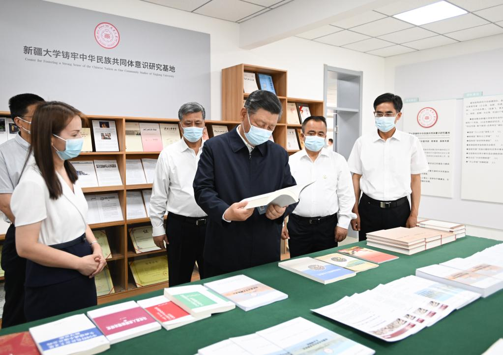 Xi visited Xinjiang University, the Urumqi International Land Port Area, the community of Guyuanxiang in the Tianshan District and the Museum of the Xinjiang Uygur Autonomous Region.