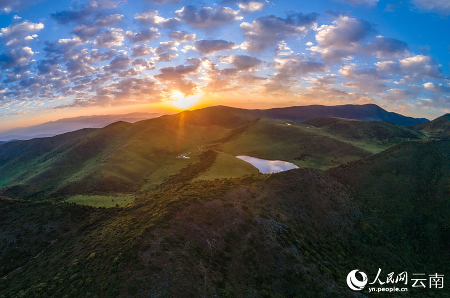 Photo shows the beautiful scenery of a sunrise at Niaodiaoshan Mountain in the Dali Bai Autonomous Prefecture, southwest China’s Yunnan Province. (Photo/Luo Xincai)