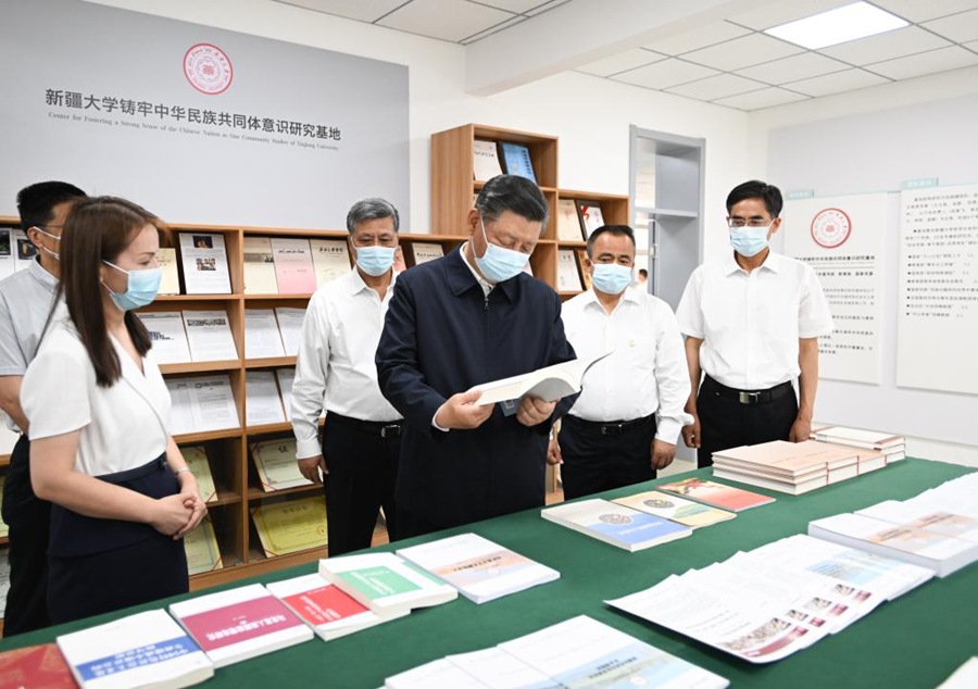 While visiting Xinjiang University on Tuesday afternoon, Xi learned about its history and development, and its efforts in nurturing talent and promoting exchanges among different ethnic groups. Xi also listened to a briefing by students who had conducted a field study.