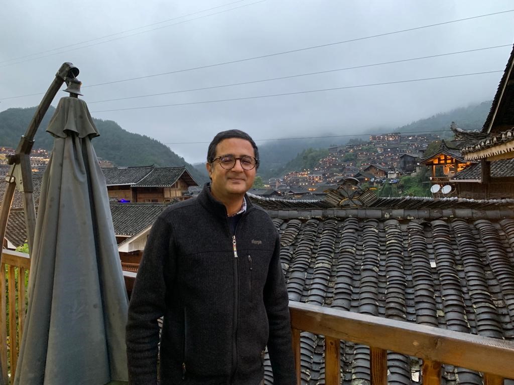 Bhaskar Koirala, the Director of Nepal Institute of International and Strategic Studies, visits an ethnic village in southwest China’s Guizhou province in 2017. (Photo provided by Bhaskar Koirala)