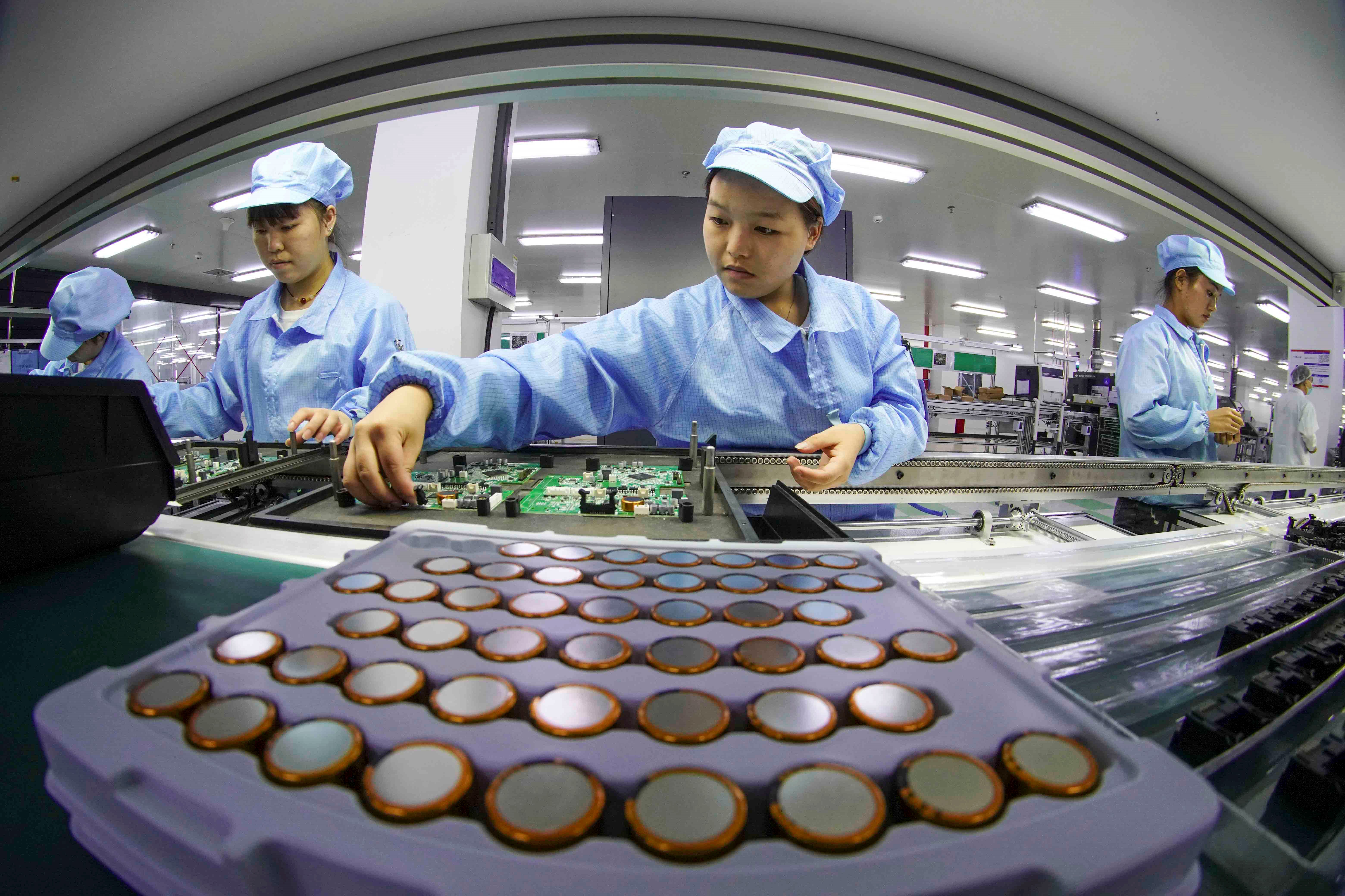 Employees of an energy company in Longwan district, Wenzhou, east China's Zhejiang province work in a workshop, July 12, 2022. (People's Daily Online/Su Qiaojiang)