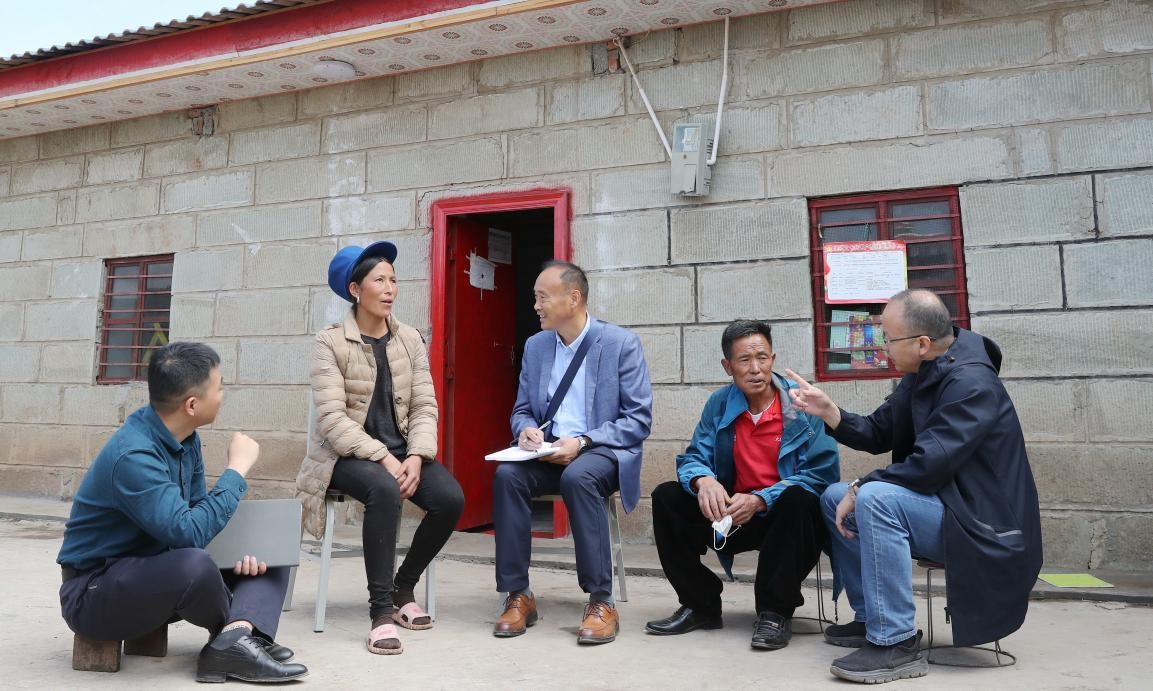 Cadres from Deqing county, Huzhou, east China's Zhejiang province offering pairing assistance for Eliping town, Butuo county, Liangshan Yi autonomous prefecture, southwest China's Sichuan province visit a local registered poor household, June 7, 2020. (People's Daily Online/Xie Shangguo)