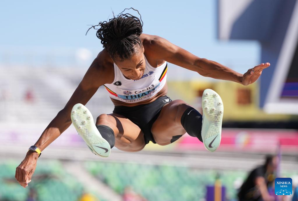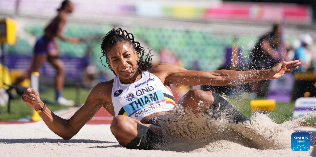 Nafissatou Thiam of Belgium competes during the long jump event of women's heptathlon at the World Athletics Championships Oregon22 in Eugene, Oregon, the United States, July 18, 2022. (Xinhua/Wu Xiaoling)