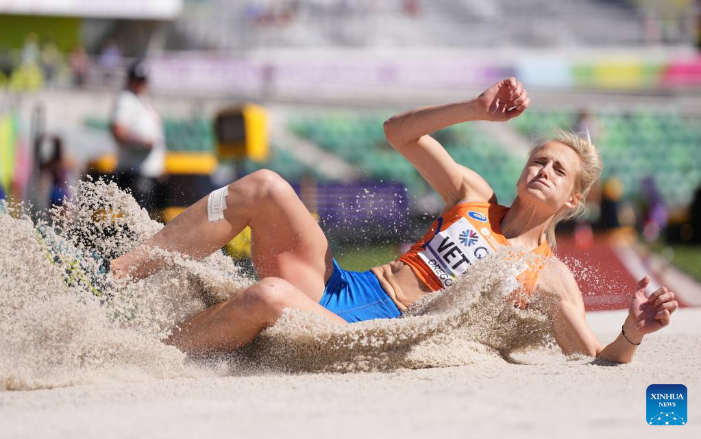 Anouk Vetter of the Netherlands competes during the long jump event of women's heptathlon at the World Athletics Championships Oregon22 in Eugene, Oregon, the United States, July 18, 2022. (Xinhua/Wu Xiaoling)