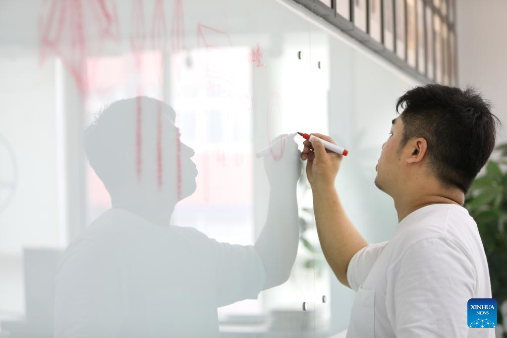 Chef Wu Yang records the making procedures of pastries at his studio in Shenyang, capital of northeast China's Liaoning Province, July 12, 2022. Wu Yang, a 35-year-old chef, has made pastry for ten years. Inspired by traditional Chinese culture, he has created various pastries with vivid shapes at his studio. (Xinhua/Wang Yijie)