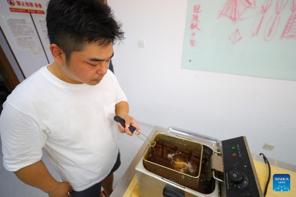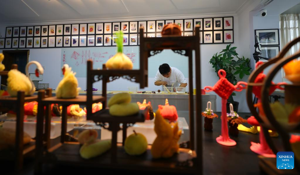 Chef Wu Yang makes a pastry at his studio in Shenyang, capital of northeast China's Liaoning Province, July 14, 2022. Wu Yang, a 35-year-old chef, has made pastry for ten years. Inspired by traditional Chinese culture, he has created various pastries with vivid shapes at his studio. (Xinhua/Yang Qing)