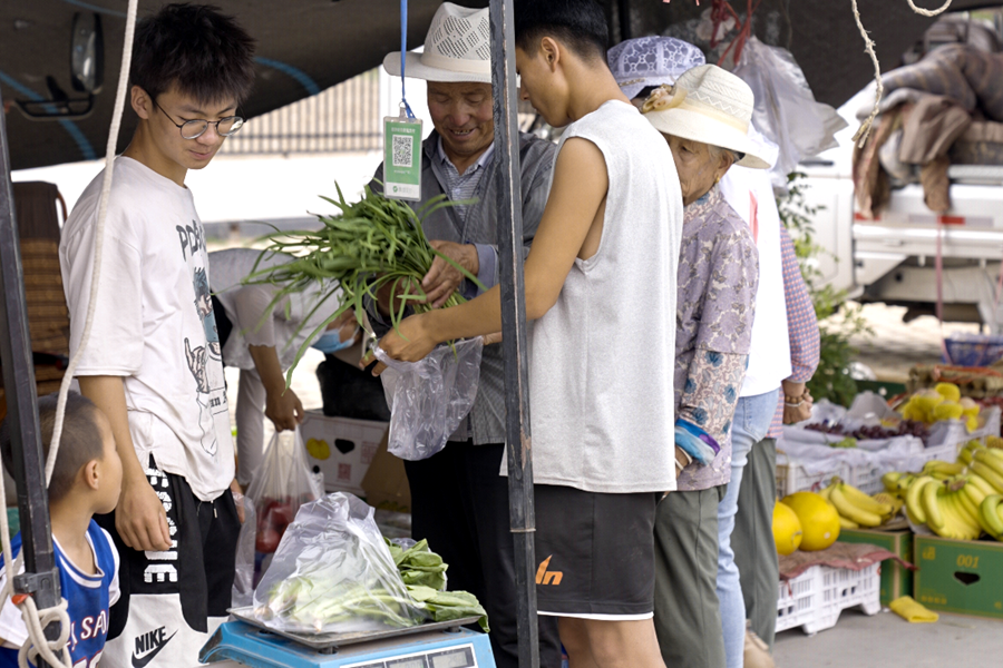 People buy local seasonal vegetables at a street market in Yuanlong Village of Minning Township, Yongning County, Yinchuan, northwest China's Ningxia Hui Autonomous Region on July 8, 2022. (People’s Daily Online/Ebulayi)