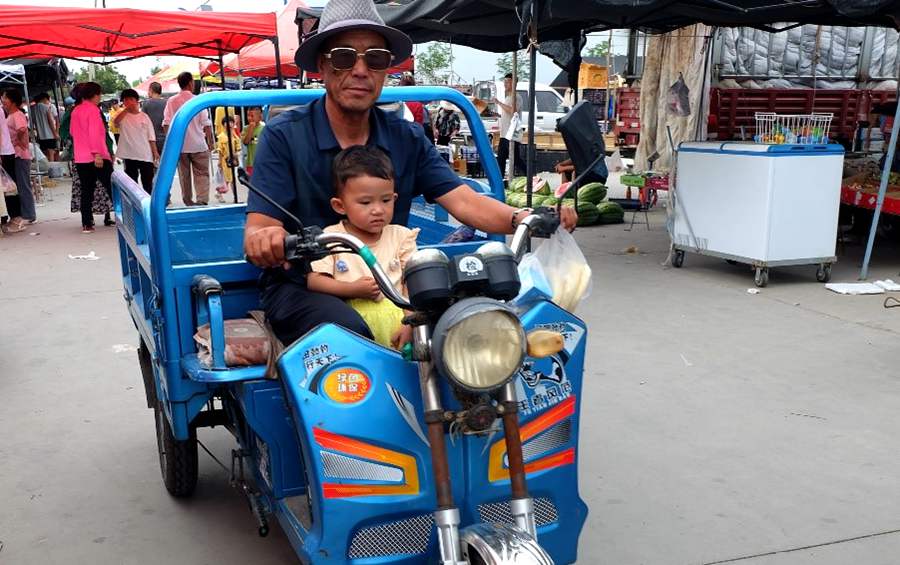 Residents leave the street market after purchasing some items in Yuanlong Village of Minning Township, Yongning County, Yinchuan, northwest China's Ningxia Hui Autonomous Region on July 8, 2022. (People’s Daily Online/Zhong Wenxing)