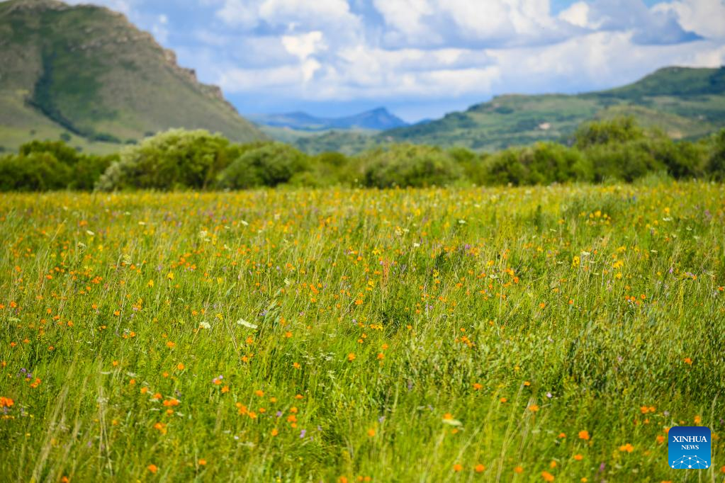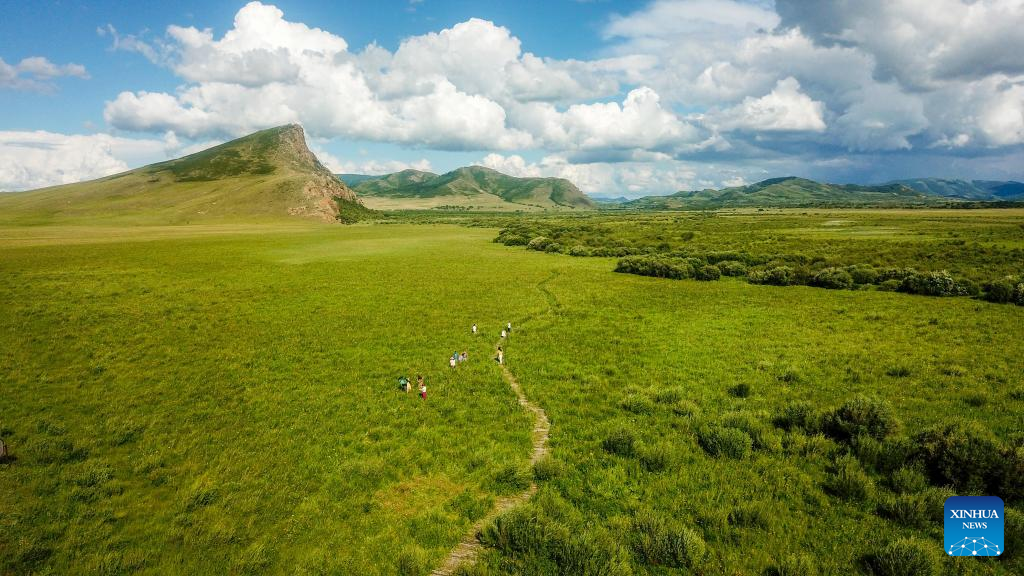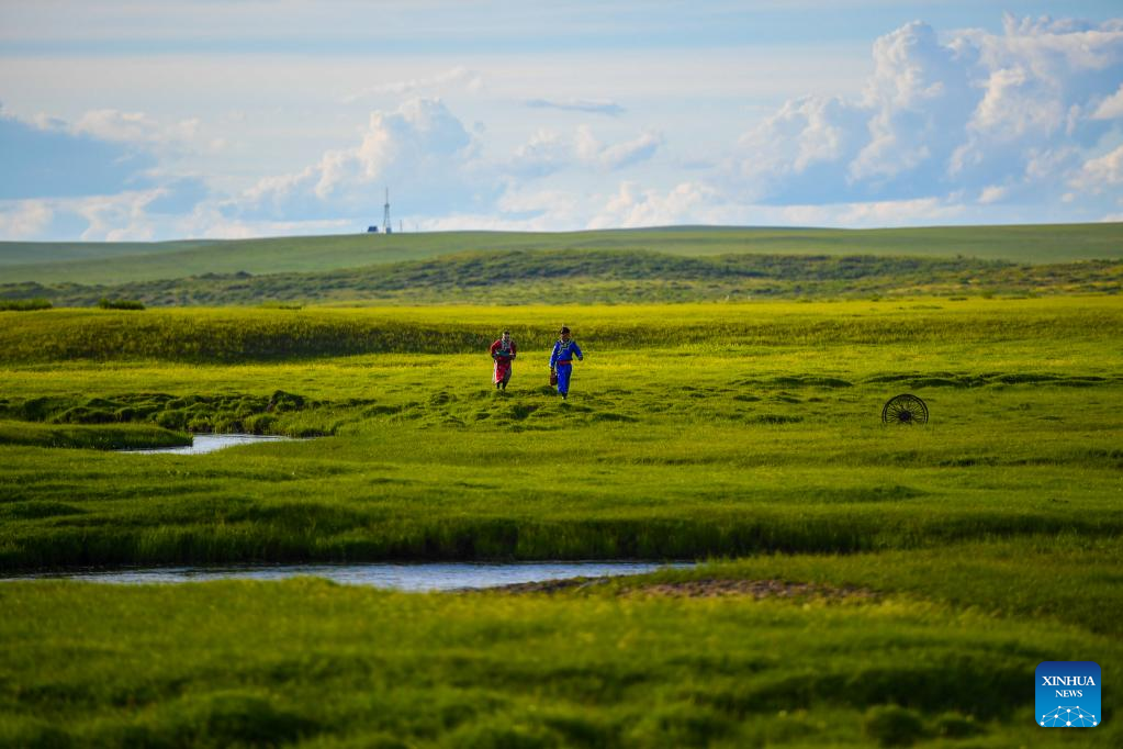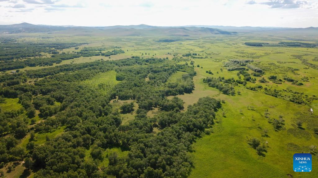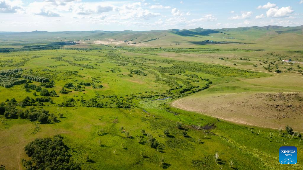 Photo taken on July 19, 2022 shows the grassland in West Ujimqin Banner of Xilingol League, north China's Inner Mongolia Autonomous Region. (Xinhua/Ren Junchuan)