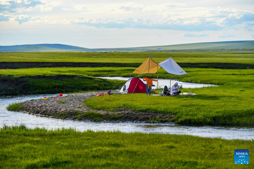 Tourists camp by a river in West Ujimqin Banner of Xilingol League, north China's Inner Mongolia Autonomous Region, July 19, 2022. (Xinhua/Peng Yuan)