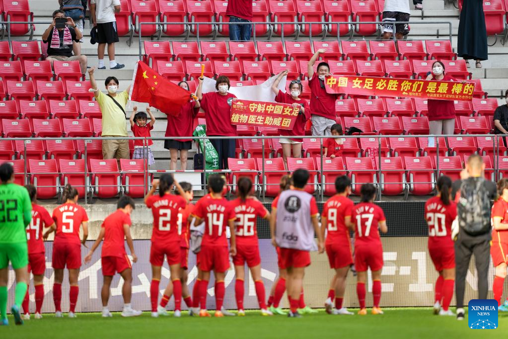 Fans of China cheer after the 2022 EAFF (East Asian Football Federation) E-1 Football Championship women's match between China and Chinese Taipei at Toyota Stadium in Toyota City in Aichi prefecture, Japan, July 20, 2022. (Xinhua/Zhang Xiaoyu)