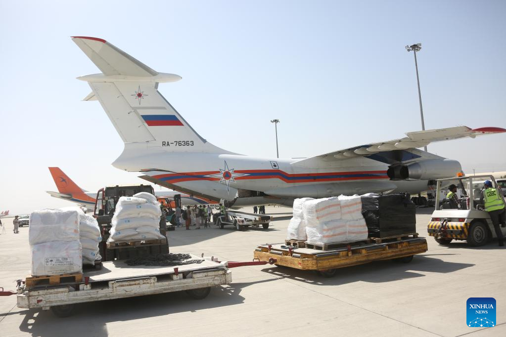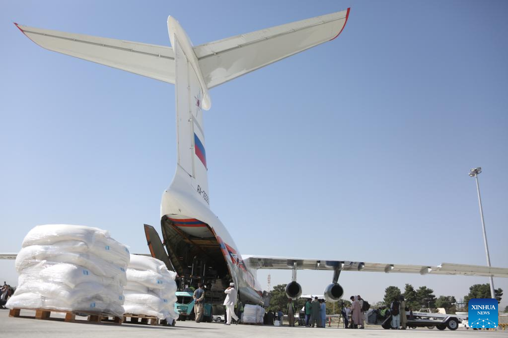 KABUL, July 20 (Xinhua) -- A Russian plane carrying 23.5 tons of humanitarian aid supplies landed at Kabul International Airport on Wednesday.