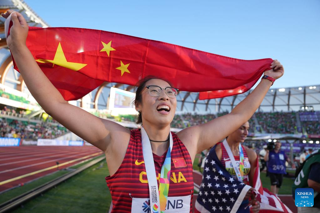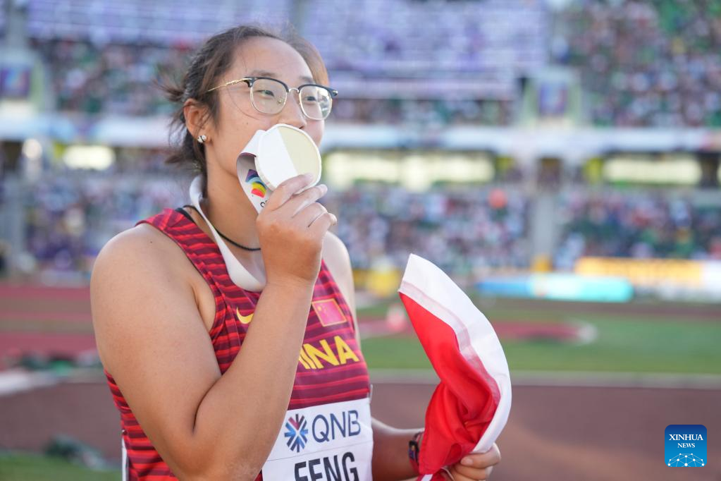 EUGENE, United States, July 20 (Xinhua) -- Chinese women throwers showed their prowess at the World Athletics Championships as Feng Bin beat her much more accomplished opponents to grab the discus throw title here on Wednesday.