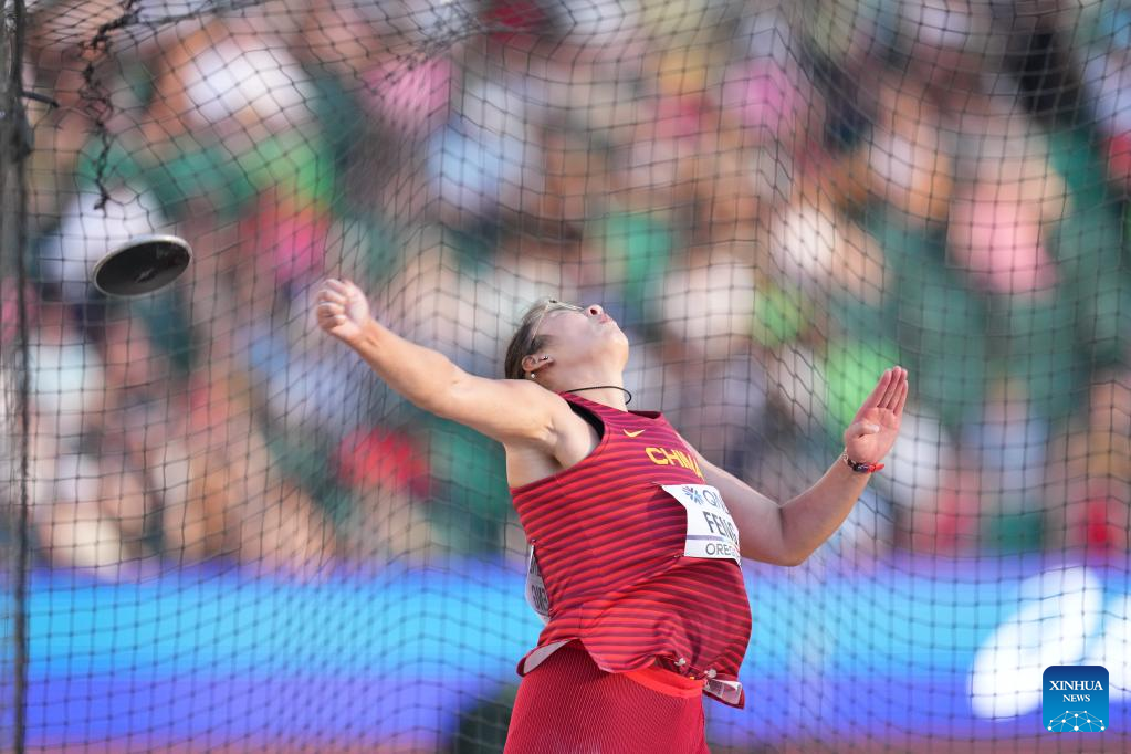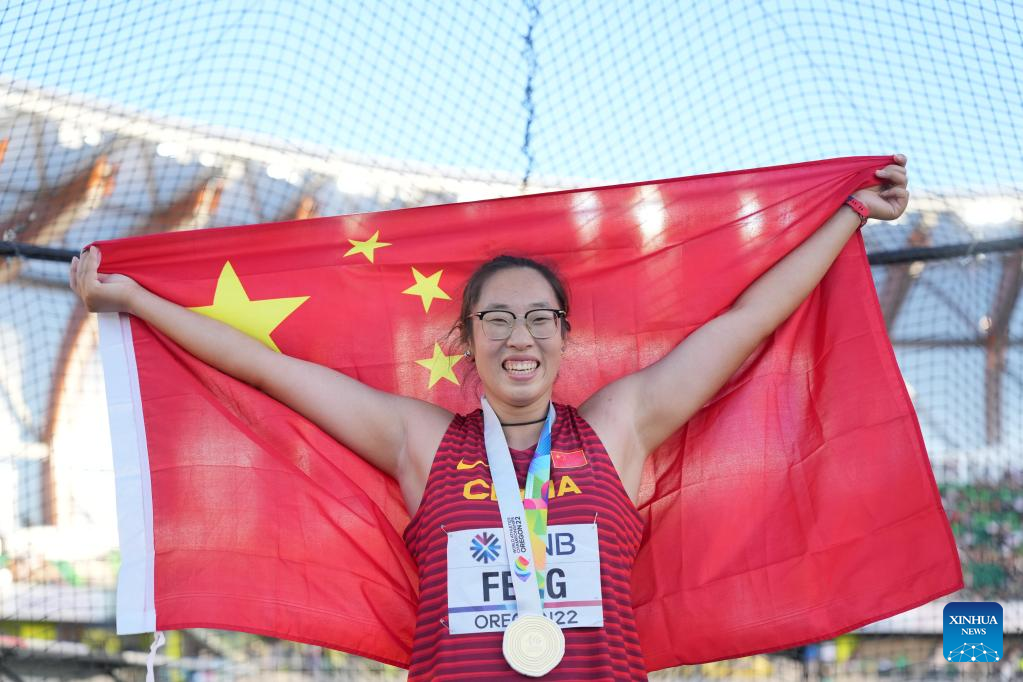 The final witnessed Feng, 28, burst onto the scene. Feng, whose previous best result was fifth place at 2019 Doha worlds, locked the victory with 69.12 meters in her first attempt as three of her six valid throws bettered or was close to her personal best of 66.00m.