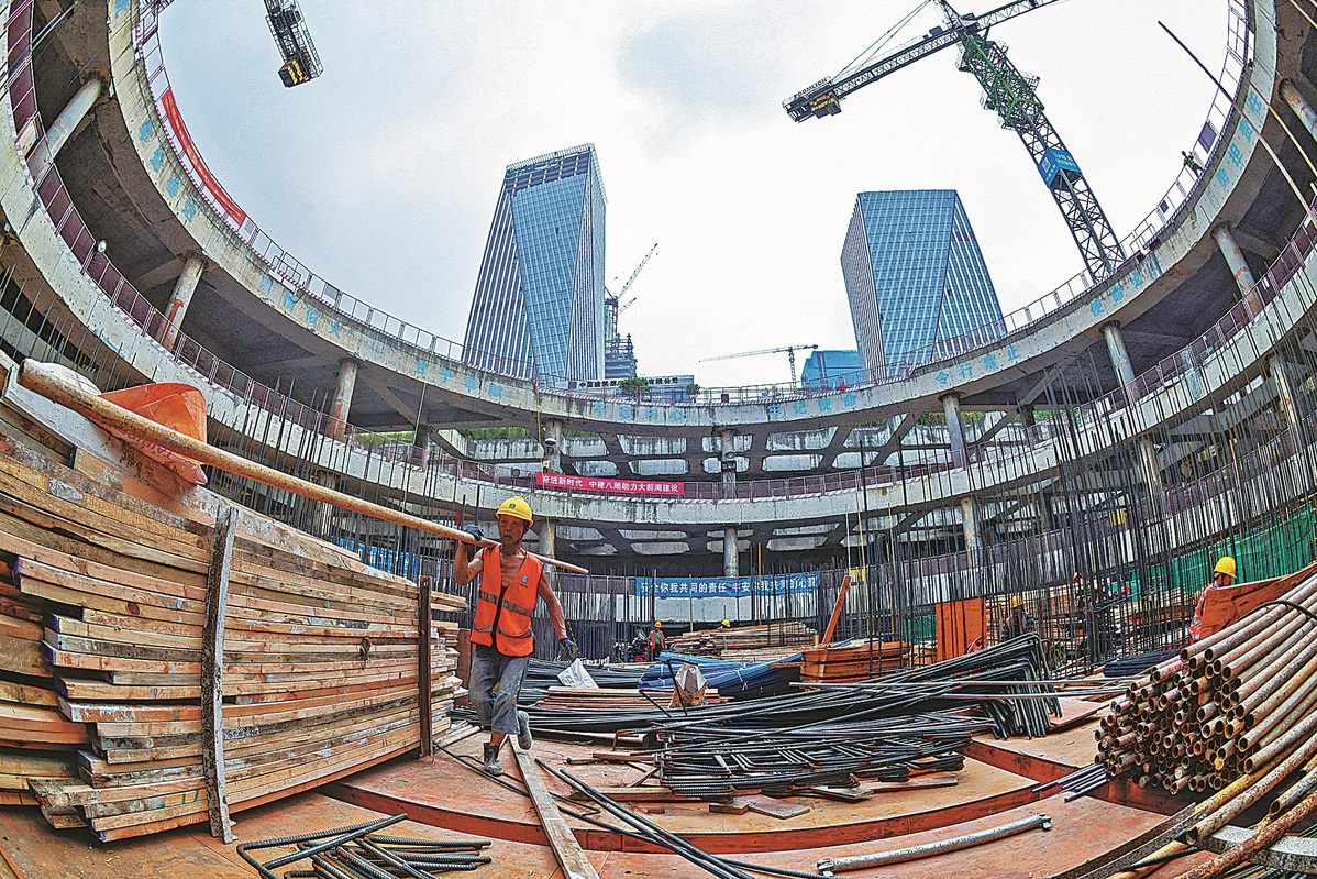 Workers construct the Qianhai Integrated Transportation Hub in Shenzhen, Guangdong province, last year. [Photo/Xinhua]