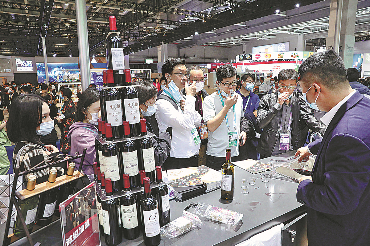 Visitors taste French wine at the China International Import Expo in Shanghai last year. [Photo by ZHU XINGXIN/CHINA DAILY]