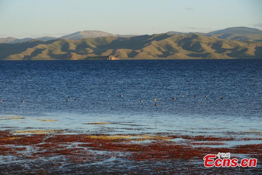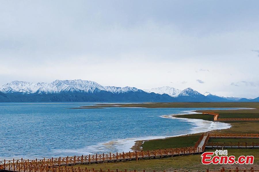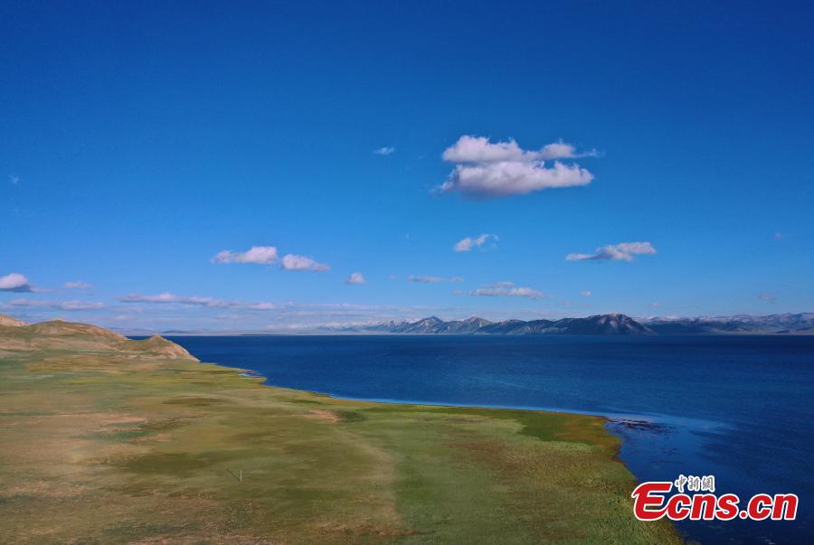 Summer scenery of Dongge Cuona Lake as pure as a "sapphire" in Maduo county, Golog Tibetan Autonomous Prefecture, northwest China's Qinghai Province. (Photo: China News Service/Ma Mingyan)
