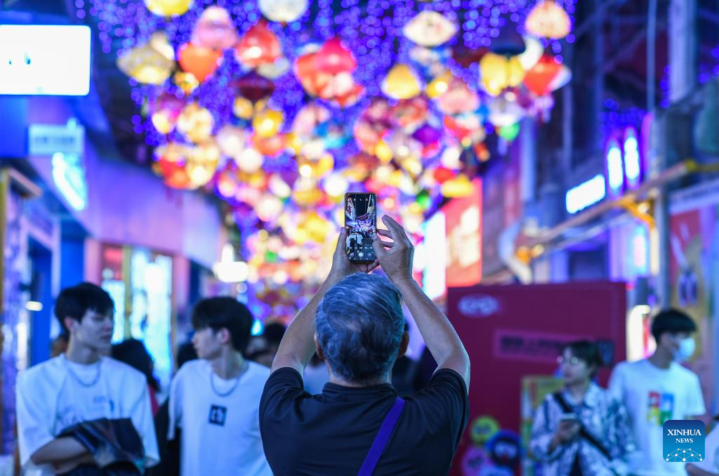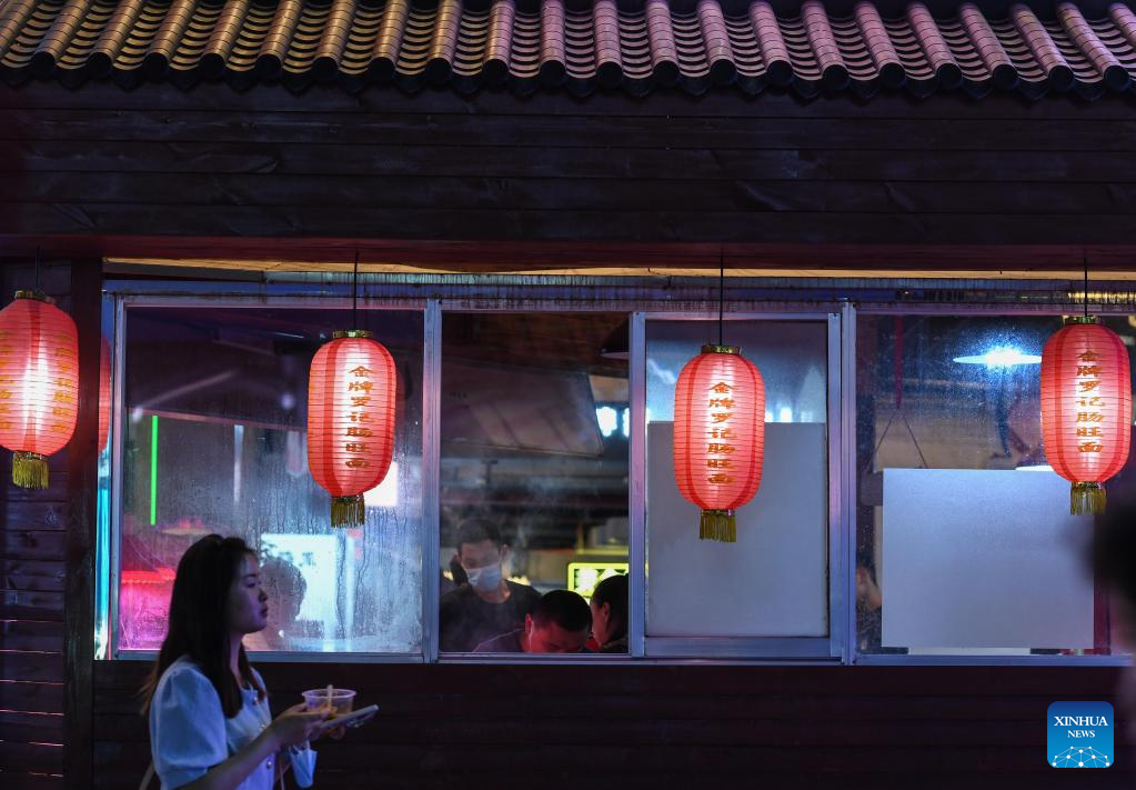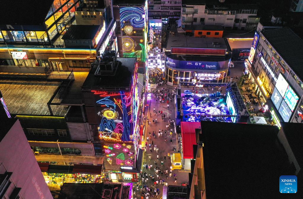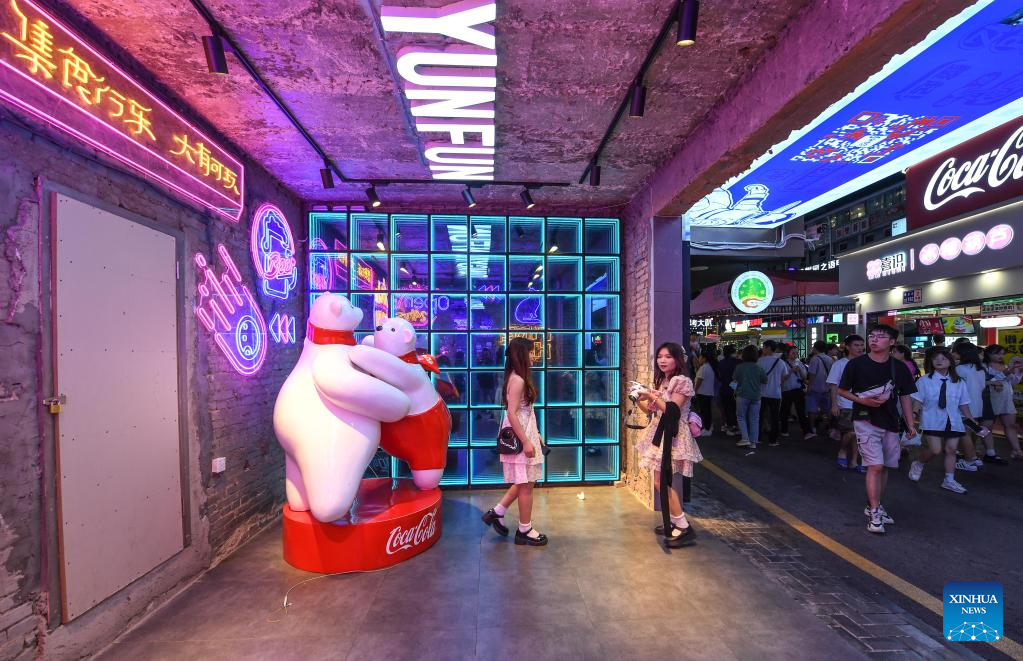 Qingyun Road was a famous bustling food street at nighttime in the city of Guiyang. Thanks to local planning and years of renovation, the road has turned to be a popular commercial pedestrian street which contains various trendy businesses like cultural innovation and art design while retaining its food street fame. (Xinhua/Yang Wenbin)