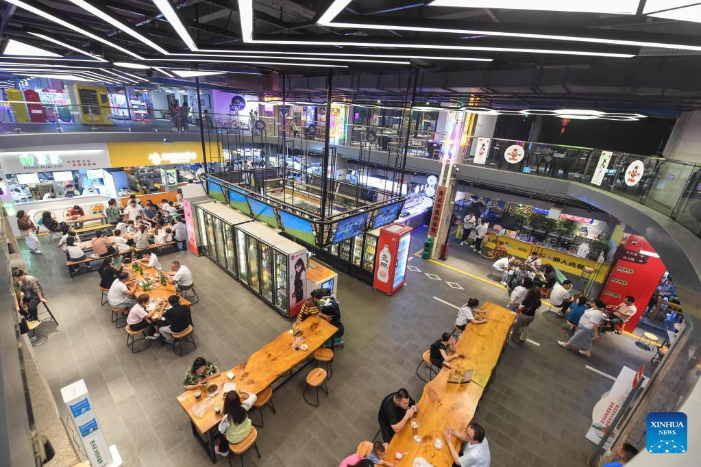 People have meals at a local market at the Qingyun Road in Nanming District of Guiyang, capital city of southwest China's Guizhou Province, July 21, 2022.