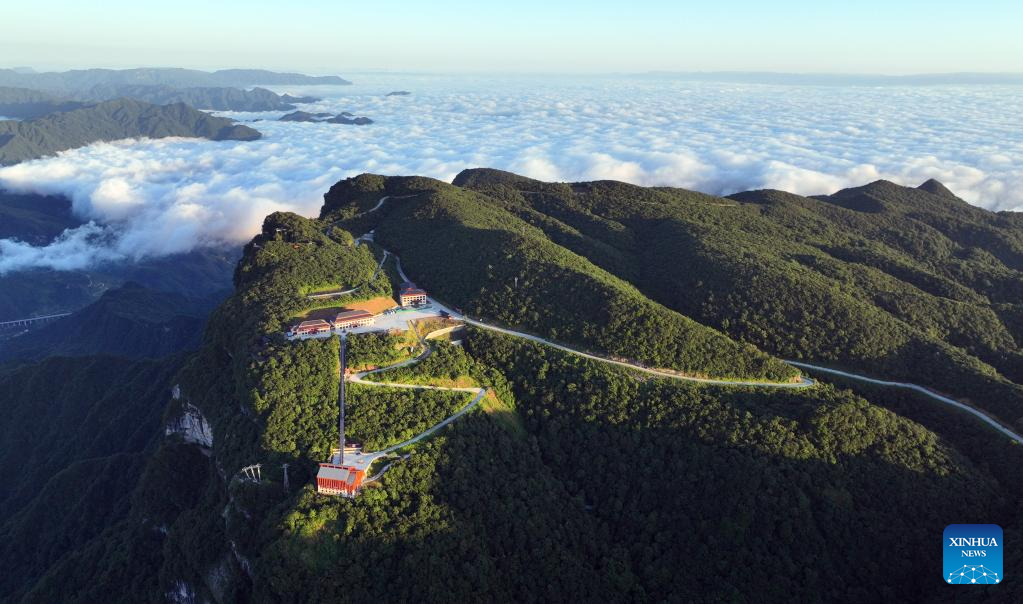 Aerial photo taken on July 23, 2022 shows the scenery of Longtoushan scenic area in Hanzhong, northwest China's Shaanxi Province. (Xinhua/Tao Ming)