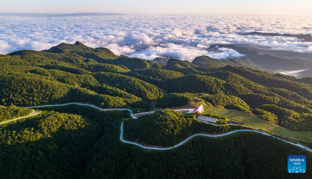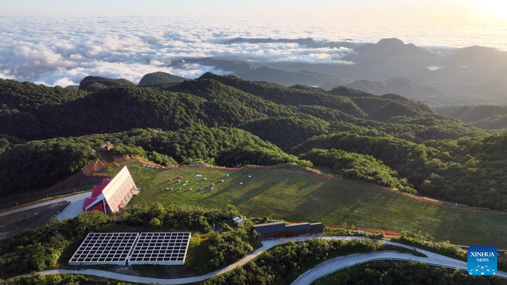 Aerial photo taken on July 23, 2022 shows a camping spot in Longtoushan scenic area in Hanzhong, northwest China's Shaanxi Province. (Xinhua/Tao Ming)