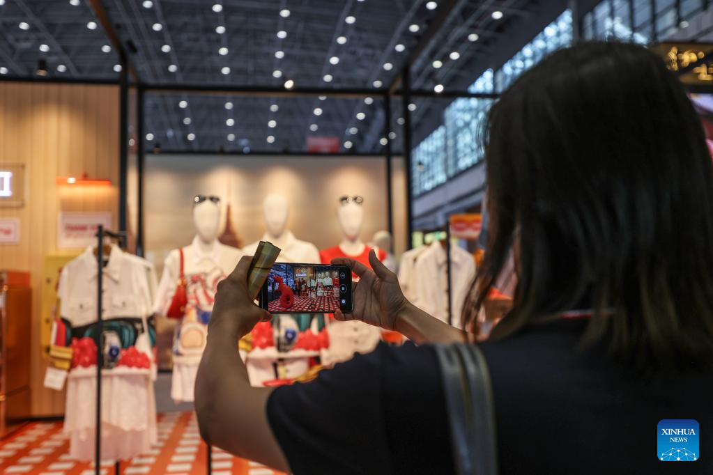 Photo taken on July 25, 2022 shows a fashion exhibition booth at the second China International Consumer Products Expo in Haikou, south China's Hainan Province.