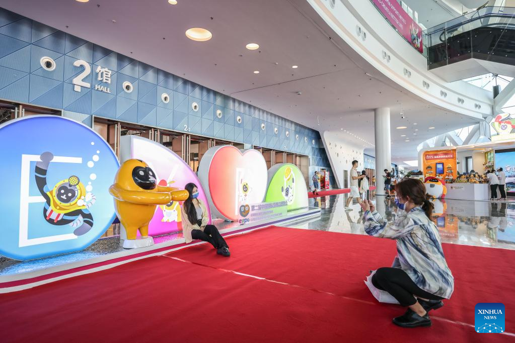 A visitor takes photos of exhibits during the second China International Consumer Products Expo in Haikou, south China's Hainan Province, July 25, 2022.