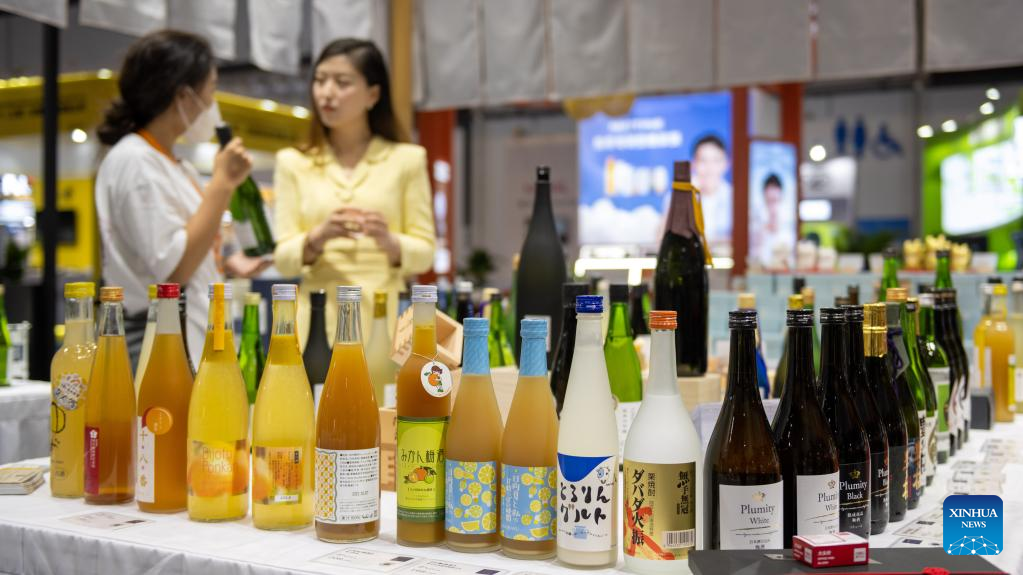A staff member introduces wine during the second China International Consumer Products Expo in Haikou, south China's Hainan Province, July 25, 2022.