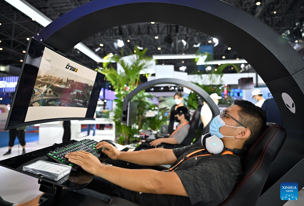 Visitors try gaming capsules during the second China International Consumer Products Expo in Haikou, south China's Hainan Province, July 25, 2022.