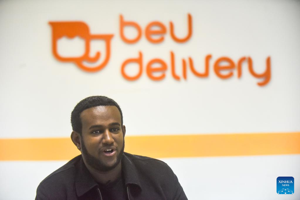 ADDIS ABABA, July 25 (Xinhua) -- On a typical sunny day in Addis Ababa, the capital of Ethiopia, Asnake Nigussie, wearing an orange uniform and a backpack, was racing on a bicycle to pick a package of food from a nearby restaurant that was ordered online minutes before.