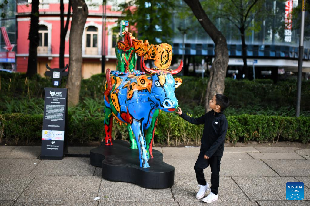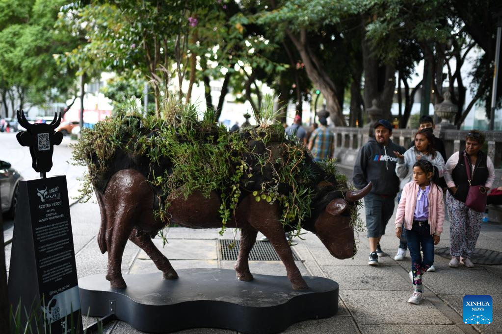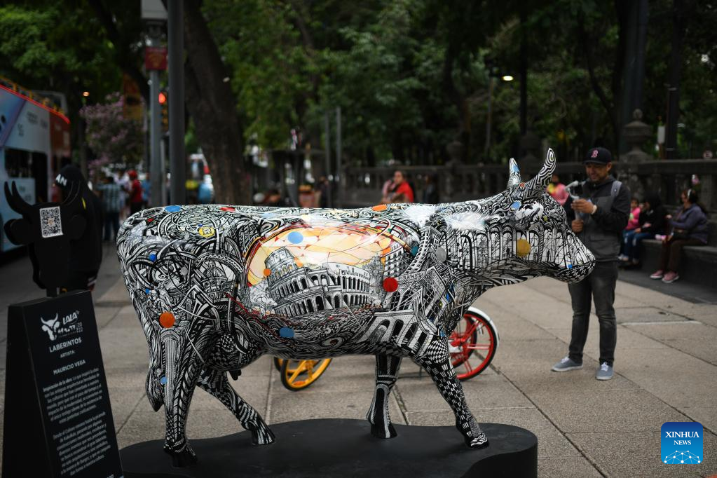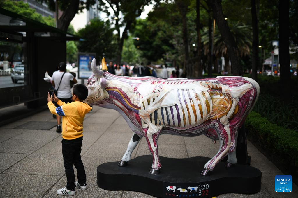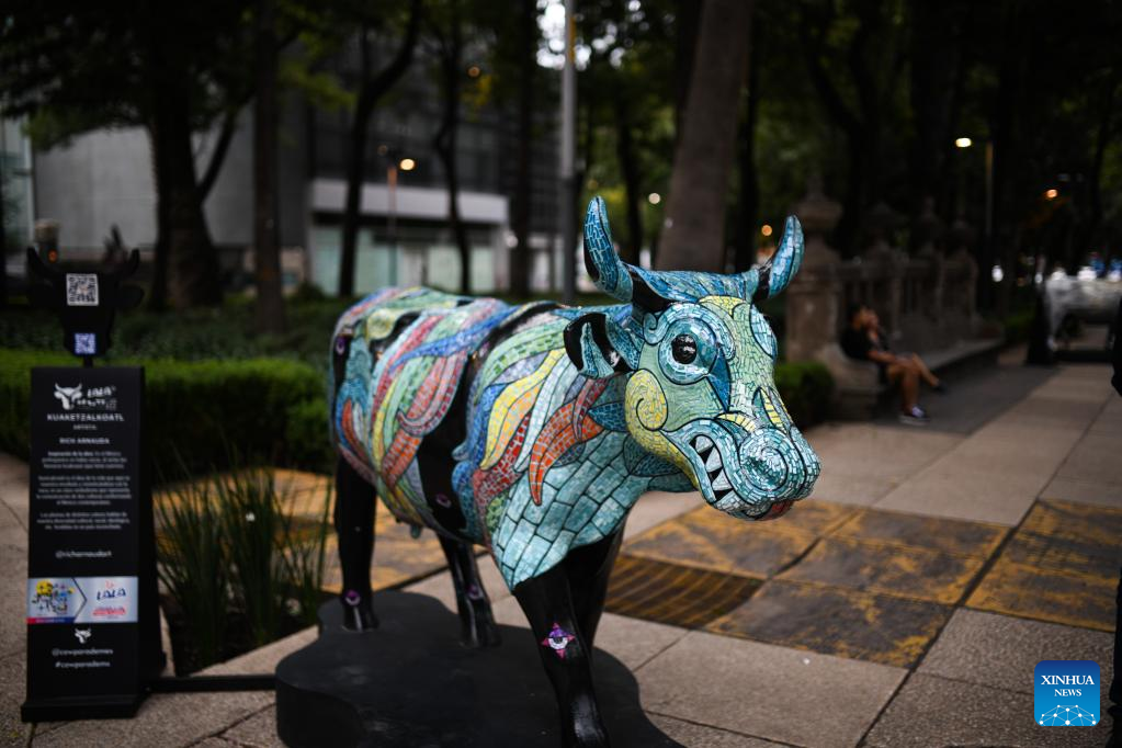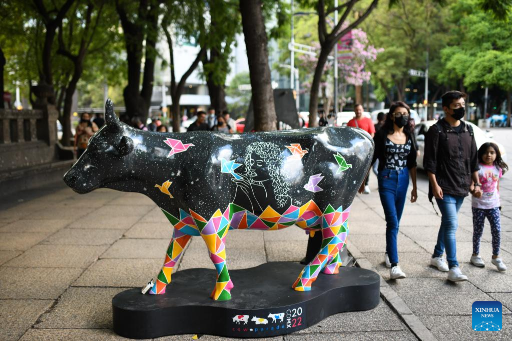 Photo taken on July 24, 2022 shows a cow sculpture displayed during the CowParade event in Mexico City, Mexico. (Xinhua/Xin Yuewei)